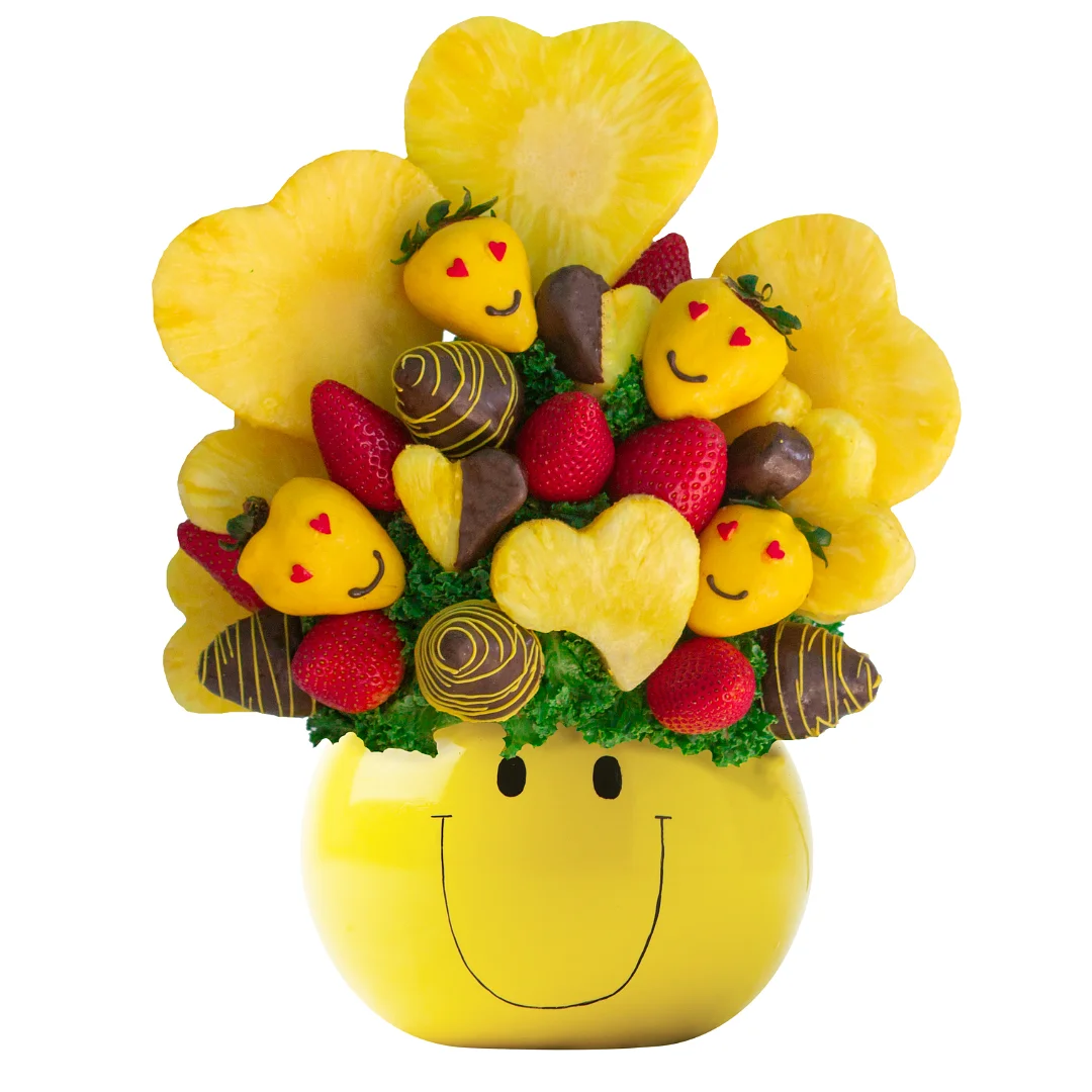¡Demuestra tu amor de una forma original! Variedad de frutas frescas, cobertura del mas exquisito chocolate, incluyendo estrellas de piña, espigas de uvas y fresas. Todo está ingeniosamente organizado para ser el regalo perfecto.
