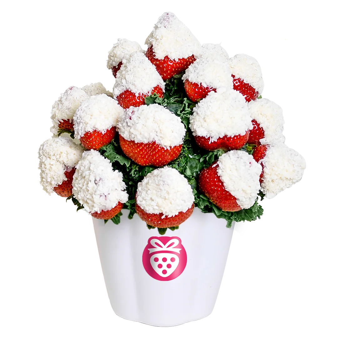 Para los amantes del coco! Deliciosas fresas cubiertas con chocolate y coco rayado!