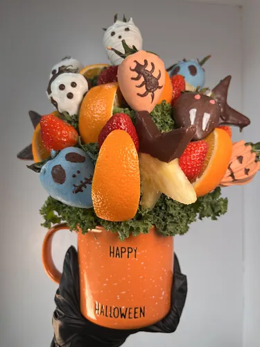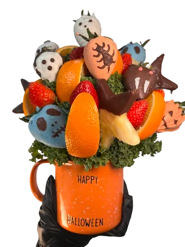 Nuestros modelos mas tenebrosos! Deliciosas fresas y frutas decoradas especialmente para celebrar la noche de brujas!